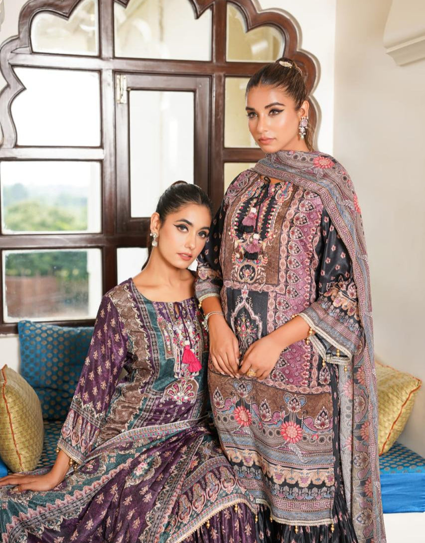 Wrapped in grace and shimmering like a star, zaha women have embodied sheer elegance in the Sitara Sharara, crafted from pure lightweight chinon silk fabric.